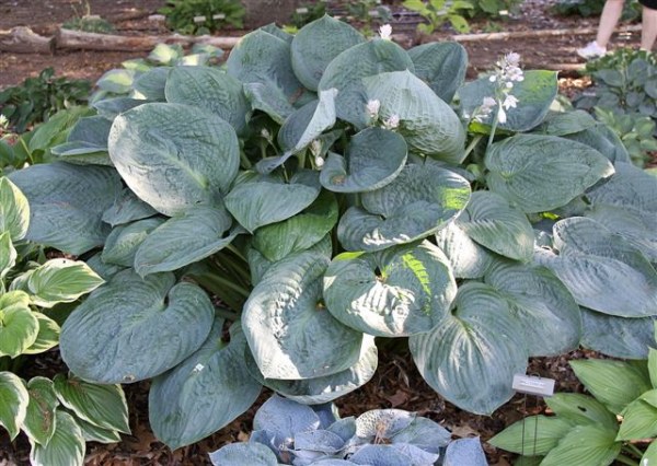 Blue leaves with yellow center which brightens to white by mid-summer.